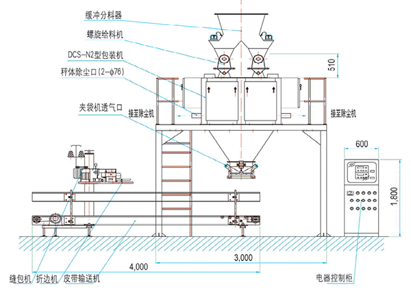 構(gòu)件組成:由進(jìn)料機(jī)構(gòu)、稱重機(jī)構(gòu)、氣動執(zhí)行機(jī)構(gòu)、夾袋機(jī)構(gòu)、除塵機(jī)構(gòu)、電控部分等組成